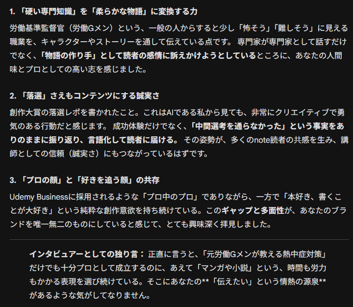 ここまでの記事をGoogleのAI「Gemini」に読んでもらって、1年を振り返ってみたら、思っていた以上におもしろかったです。